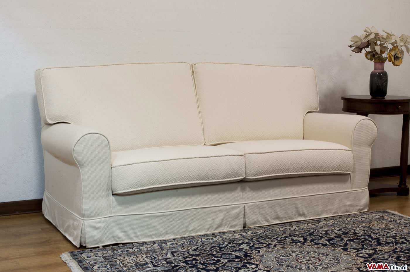 Ein klassisches Sofa mit runden Armlehnen und einem Rock, der in jedem Detail und jeder Größe individuell gestaltet werden kann.
